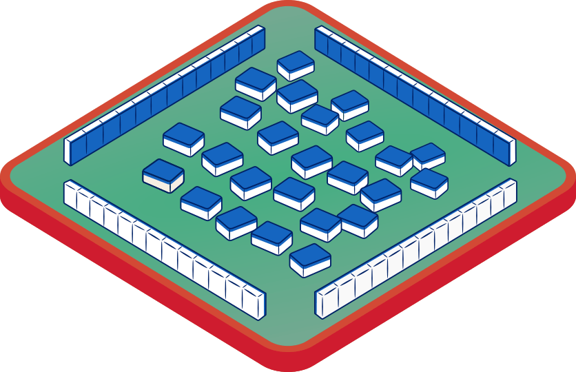 If your Mahjong tiles are big enough to stand up on their own, they can be used without racks. If your tiles are the standard American Mah Jongg size that are too small to stand up on their own, you need racks. Your Mahjong set may come with dice or a “wind indicator”, but they are not used in Flex Mahjong. You don’t have to keep score if you are just playing for fun. If you are keeping score, you can use scoring tokens like poker chips, or use coins for payouts to winners.