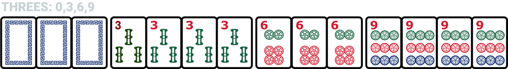 - Threes: 0, 3, 6, 9