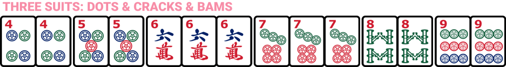 - The suits are: Bams, Cracks, Dots, Winds, & Flowers.