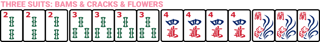 - All flower tiles are identical, making flowers a suit with only 1 number.