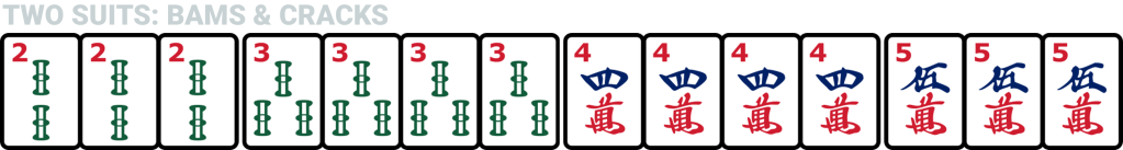 Your hand can use tiles of only one suit, or two suits, but not more than that. You can use any pairing of the 5 suits, or use a single suit.