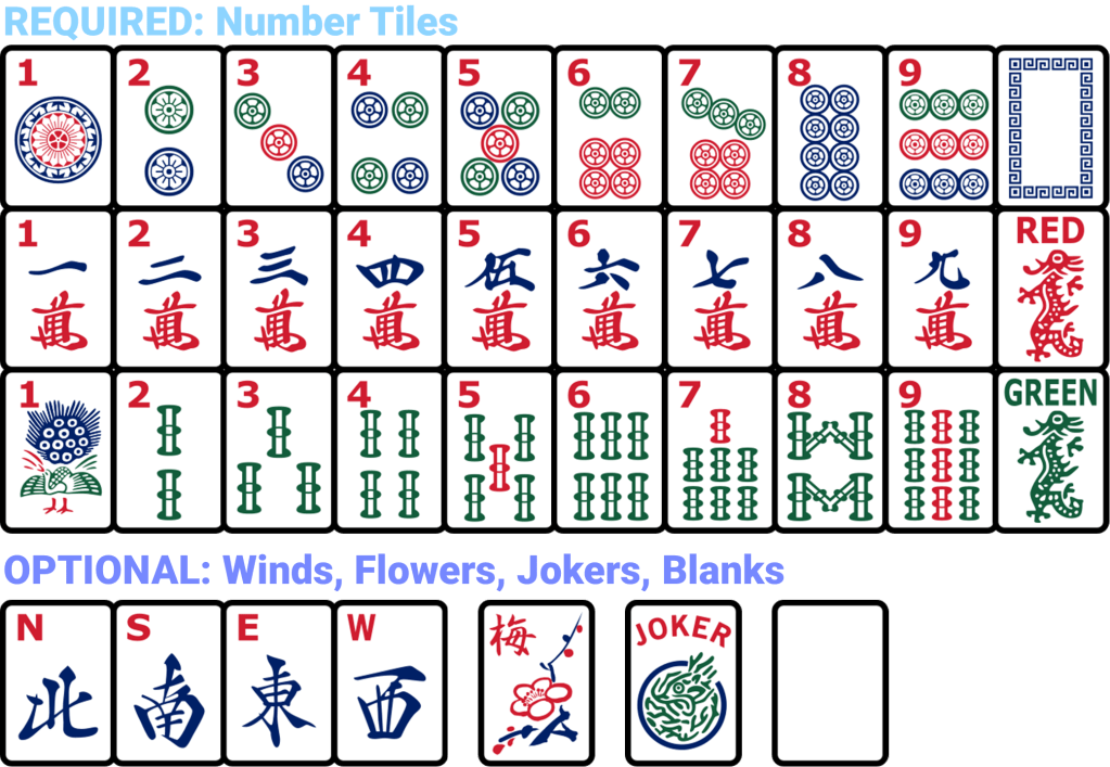 All you need to play Flex Mahjong is a set of Mahjong tiles and a group of friends. These rules explain the standard four player game, then give simple modifications for other player counts.